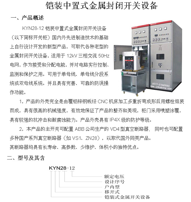 產品名稱:KYN28-12型中置式高压开关柜