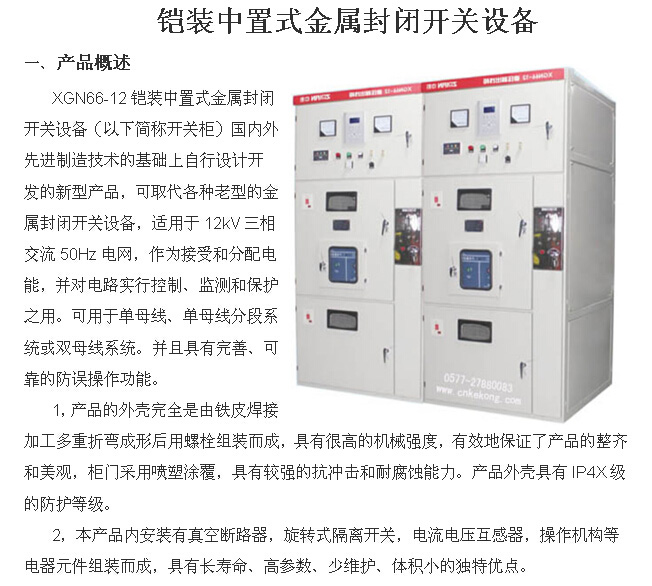 XGN66-12鎧裝中置式金屬封閉開關(guān)設(shè)備是國內(nèi)外先進制造技術(shù)的基礎(chǔ)上自行設(shè)計開發(fā)的新型產(chǎn)品,可取代各種老型的金屬封閉開關(guān)設(shè)備,適用于12kV三相交流50Hz電網(wǎng),作為接受和分配電能,并對電路實行控制、監(jiān)測和保護之用。可用于單母線、單母線分段系統(tǒng)或雙母線系統(tǒng)。并且具有完善、可靠的防誤操作功能。